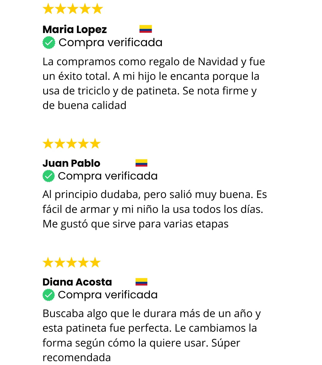- Diseño 3 en 1: patineta, bici y triciclo en un solo producto.